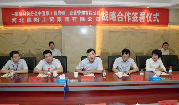 5月21日,中國建筑裝飾協會材料分會秘書長歐陽林與中直采(供應鏈)企業管理有限公司董事長姜晟強、總經理劉波、物資部經理陳艷軍等一行來到河北晨陽工貿集團有限公司參觀。當天,中直采董事長姜晟強和晨陽水漆黨委書記、常務副總裁劉占川分別代表雙方簽署戰略合作協議。