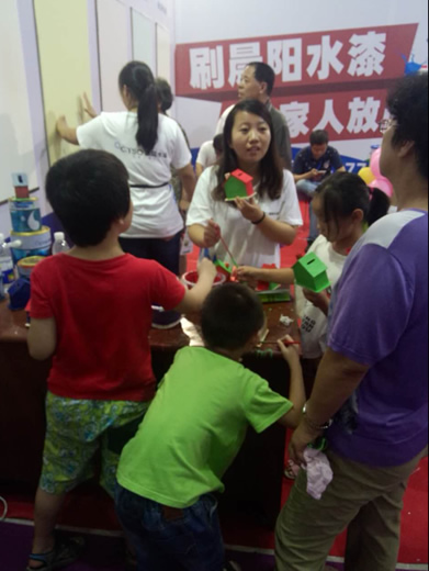 晨陽水漆展區(qū)重點(diǎn)展示了公司生產(chǎn)的環(huán)保型家裝水漆和多功能水漆。為了讓參觀者更好地了解環(huán)保水漆特性和應(yīng)用,公司展位精心設(shè)計(jì)了海報(bào)、宣傳單頁;布置有水漆應(yīng)用在工業(yè)、家裝、木器領(lǐng)域的展板和模型;邀請參觀人員現(xiàn)場用水漆涂刷木房子,親身體驗(yàn)晨陽水漆的環(huán)保特性,現(xiàn)場更有訂單抽獎100%中獎活動等給廣大老百姓帶來實(shí)惠的環(huán)節(jié),成為了展會關(guān)注焦點(diǎn),參觀者絡(luò)繹不絕。