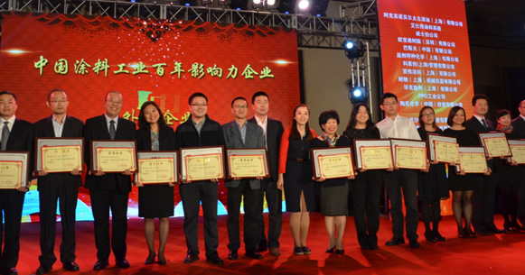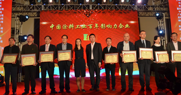 跨越百年,傳承夢想——中國涂料工業百年頒獎晚會,暨中國涂料工業協會成立30周年紀念活動2015年10月20日在北京隆重舉行,對中國涂料工業100年發展中做出貢獻的專家、學者、企業家以及優秀企業進行了表彰,獎項分為中國涂料工業百年功勛人物、中國涂料工業百年影響力人物、中國涂料工業百年杰出企業家、中國涂料工業百年突出貢獻人物、中國涂料工業百年影響力企業、中國涂料工業百年百強企業進行了表彰,并對2015中國國際涂料博覽會-中國涂料百強企業聯展進行了授牌。