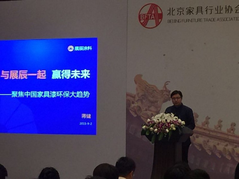 在上半場的推介會上,展辰涂料集團品牌總監蔣健向與會的家具人解讀了穹頂之下,中國家具業的未來該如何選擇的主題分享。蔣總的分享從國家對環保層面的政策,到家具業面臨的環保涂裝的困惑,再到環保涂裝一攬子方案推介。蔣總的推介報告似乎與此次活動度身定造,在場嘉賓無不全神貫注、如獲珍寶。