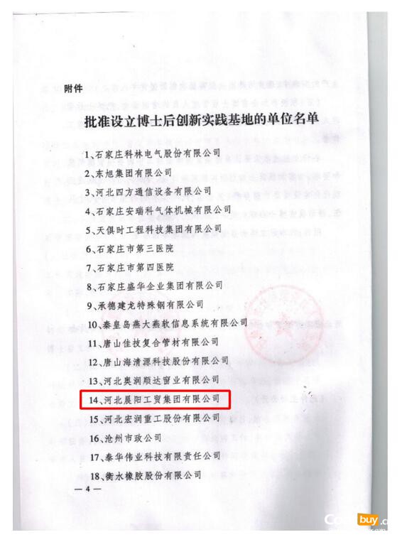 根據(jù)博士后工作總體規(guī)劃,經(jīng)專(zhuān)家評(píng)議,河北省人力資源和社會(huì)保障廳、省博士后管理委員會(huì)研究決定,批準(zhǔn)河北晨陽(yáng)工貿(mào)集團(tuán)有限公司等30個(gè)單位設(shè)立博士后創(chuàng)新實(shí)踐基地,開(kāi)展博士后工作。