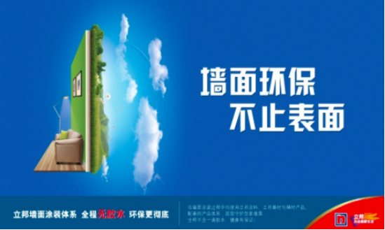 立邦以"永續大地精‘彩’"(ECO+COLOR)作為立邦企業社會責任的最高指導原則,在環保趨勢愈發明顯的時代背景下,立邦綠色行動力求從綠色研發、綠色采購、綠色生產到綠色推廣,最大限度降低能耗、節約資源,打造可持續發展的綠色平臺。2015年,立邦乳膠漆產品100%達到國家綠色標準,木器漆產品80%以上通過國家十環環保標志,低VOC(揮發性有機化合物)產品在乳膠漆所有系列中均達100%。