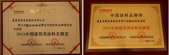 展辰涂料榮獲“2013中國建筑類涂料名牌獎”