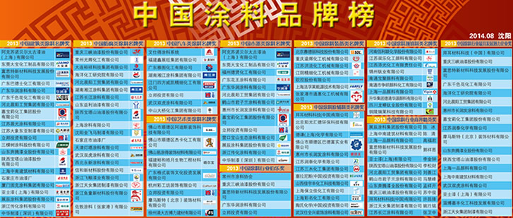 中國(guó)涂料顏填料類名牌獎(jiǎng)獲獎(jiǎng)品牌: