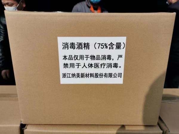 浙江納美新材料股份公司積極捐贈消毒酒精