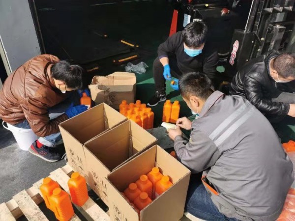 抗擊疫情期間,浙江納美新材料股份公司黨支部組織安吉黨員將公司實驗室庫存的酒精稀釋成75%的消毒酒精,積極支援機關單位消毒抗疫。