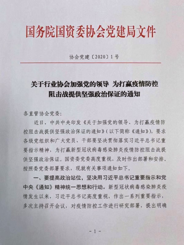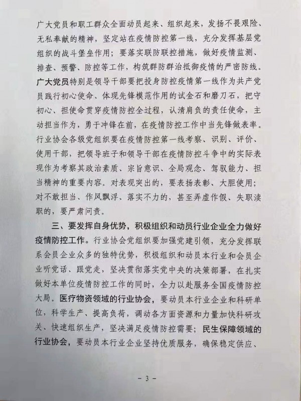 關于行業協會加強黨的領導 為打贏疫情防控阻擊戰提供堅強政治保證的通知