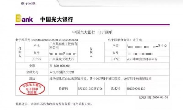 生命重于泰山,疫情十萬(wàn)火急。截至1月28日,廣州集泰化工股份有限公司通過(guò)各種途徑緊急采購(gòu)價(jià)值20余萬(wàn)元的9萬(wàn)只醫(yī)用口罩,發(fā)往京山市紅十字會(huì),緊急馳援湖北抗擊疫情。并于今日捐贈(zèng)現(xiàn)金80萬(wàn)元。