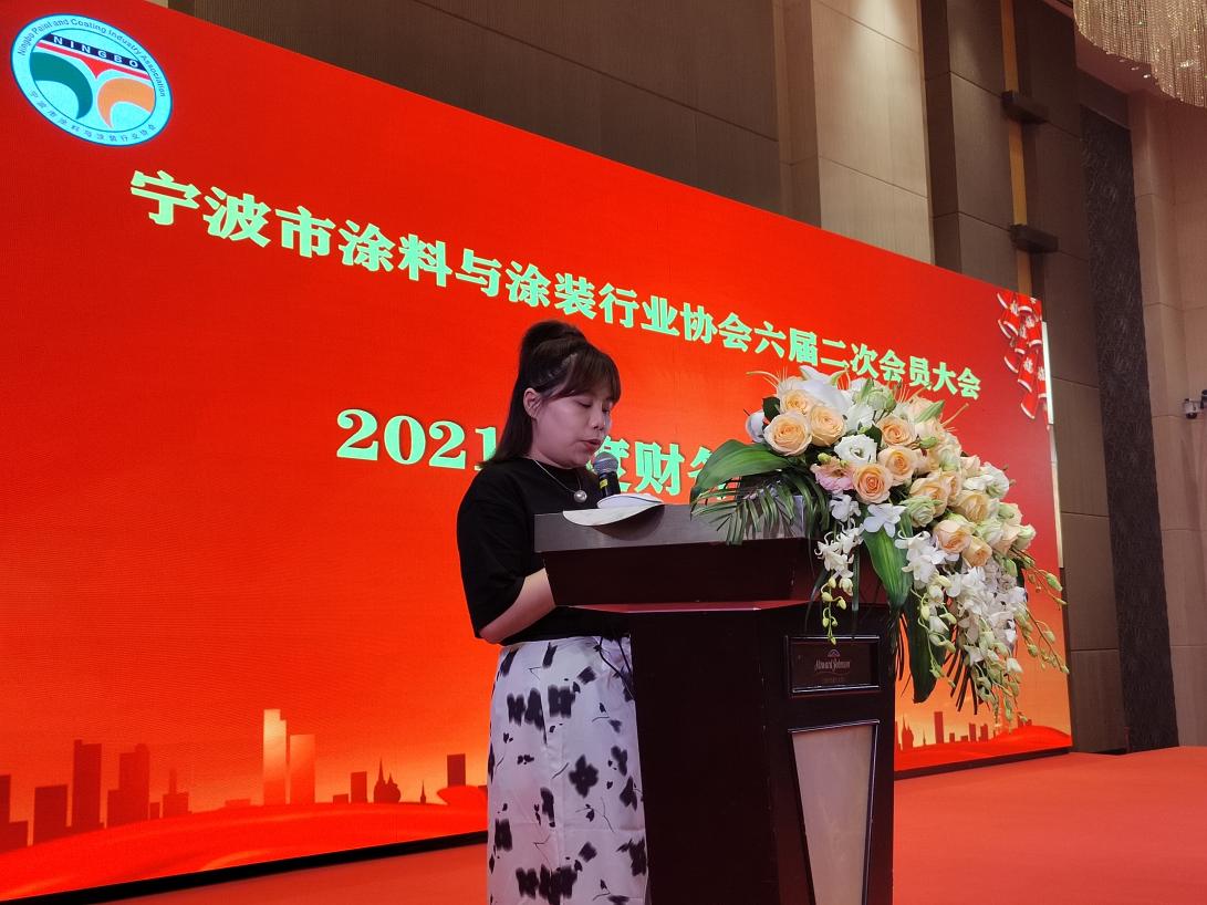 寧波知聯三江稅務師事務所有限公司嚴珂娜經理為大會作《寧波市涂料與涂裝行業協會2021年度財務收支報告》。