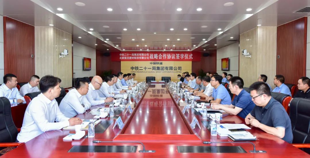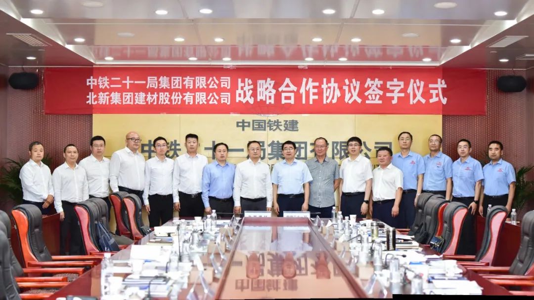 中鐵二十一局集團、西部鐵建工程材料科技有限公司和北新建材有關部門、單位負責同志參加簽約儀式和座談。中鐵二十一局集團有限公司隸屬國務院國資委下屬的中國鐵建股份有限公司,是集工程建設、科技研發、房地產開發、礦產資源開發及商貿經營等于一體的國有特大型建筑企業集團。擁有施工機械、檢測等設備4137余臺(套),年度施工能力400億元以上。先后完成了青藏鐵路等60多項國家鐵路干線工程建設、13000多條公里電氣化鐵路工程建設,都汶高速等40多條高等級公路建設。曾先后榮獲中國建筑工程魯班獎、詹天佑獎、廣廈獎、國家優質工程金(銀)獎、全國百項精品工程獎30多項;榮獲省(部)級優質工程獎60多項;榮獲國家、省部級科技進步獎30多項,其中國家科技進步特等獎1項;國家和省部級工法40多項、專利130多項,其中發明專利30多項,創中國建筑施工企業新紀錄6項。