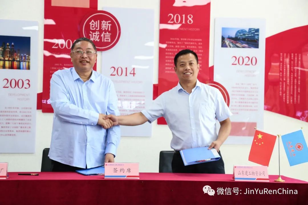 石家莊市油漆廠董事長焦亞平、山東建工建材物資有限公司董事長任俊生,代表雙方簽約。標志著雙方合作正式邁出了關鍵一步。