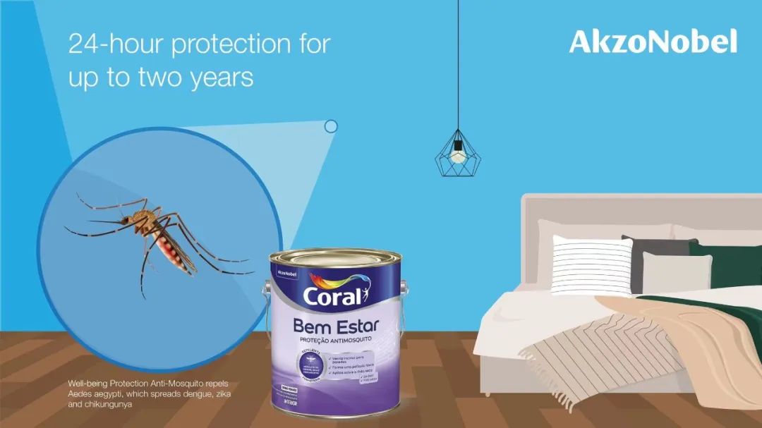 阿克蘇諾貝爾旗下Coral品牌在巴西推出了一款功能強大的驅蚊涂料。這款無色啞光清漆專門針對埃及伊蚊設計。埃及伊蚊危害巨大,可傳播登革熱病毒、寨卡病毒和基孔肯雅病毒。