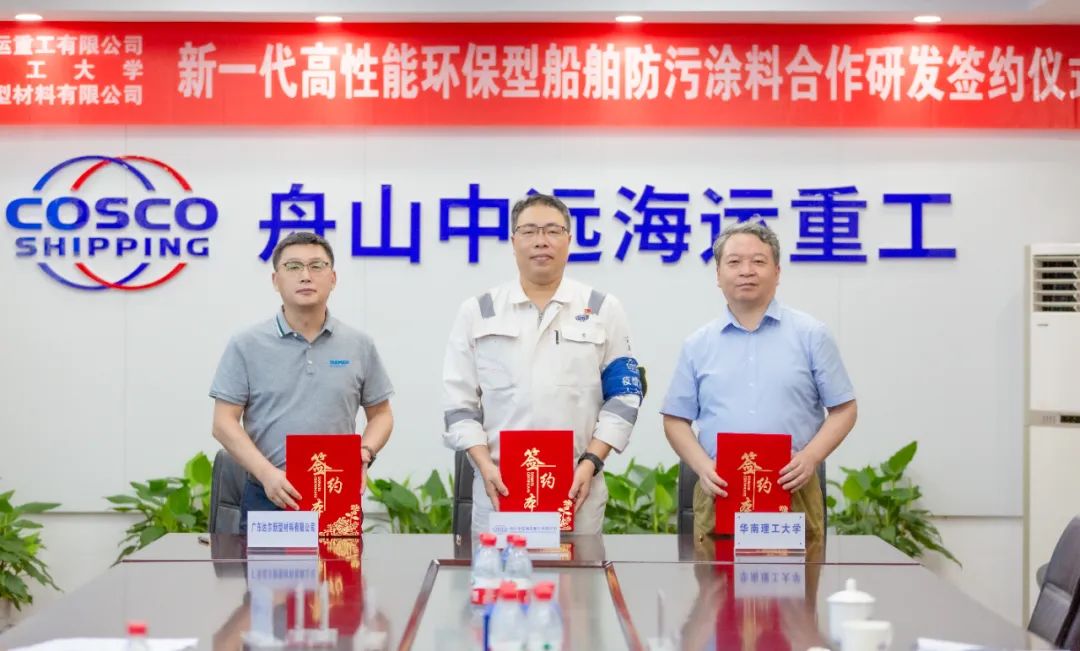 為積極踐行船舶全生命周期管理理念,探索環(huán)保、高性能、長效的防腐材料,助力企業(yè)高質(zhì)量發(fā)展,7月29日,舟山中遠(yuǎn)海運(yùn)重工與華南理工大學(xué)、廣東達(dá)爾新型材料有限公司簽署“新一代高性能環(huán)保型船舶防污涂料合作研發(fā)協(xié)議”。