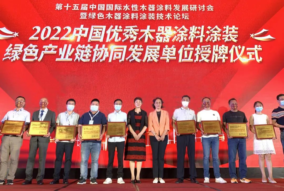 研討會現場著重表彰了“中國優秀木器涂料涂裝綠色產業鏈協同發展單位”,海太歐林集團憑借優秀的環保涂裝技術和實踐應用,獲得授牌。