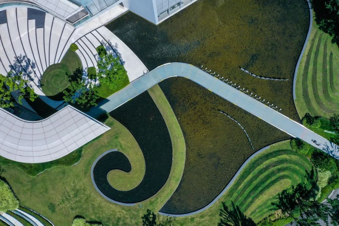 鳥瞰麗水大家·未來社區(qū)體驗中心,斐波那契數(shù)列所呈現(xiàn)的“黃金螺旋曲線”,連通在城市街道與靈山景區(qū)之間,也鏈接著原生與未來之路。