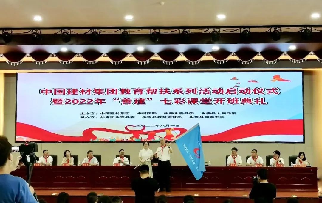 8月1日上午,中國(guó)建材集團(tuán)教育幫扶系列活動(dòng)啟動(dòng)儀式暨2022年“善建”七彩課堂開(kāi)班典禮在云南省永善縣順利舉行。中國(guó)建材集團(tuán)黨委副書(shū)記常張利出席會(huì)議,向北新建材及相關(guān)兄弟企業(yè)的志愿者授予志愿服務(wù)旗幟。