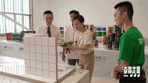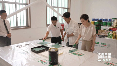 經歷了色彩考驗,武大靖和常婷嘗試了滾筒涂刷和瓷磚美縫等工藝,看似簡單的操作手法,其實包含諸多專業技巧,難倒了兩位新手“粉刷匠”。好在三棵樹不止為消費者提供綠色健康的產品,還推出“馬上住”一站式涂刷服務,提供從基層妥帖處理到面層裝飾保護的標準化感動服務,幫助消費者安全便捷煥新家。