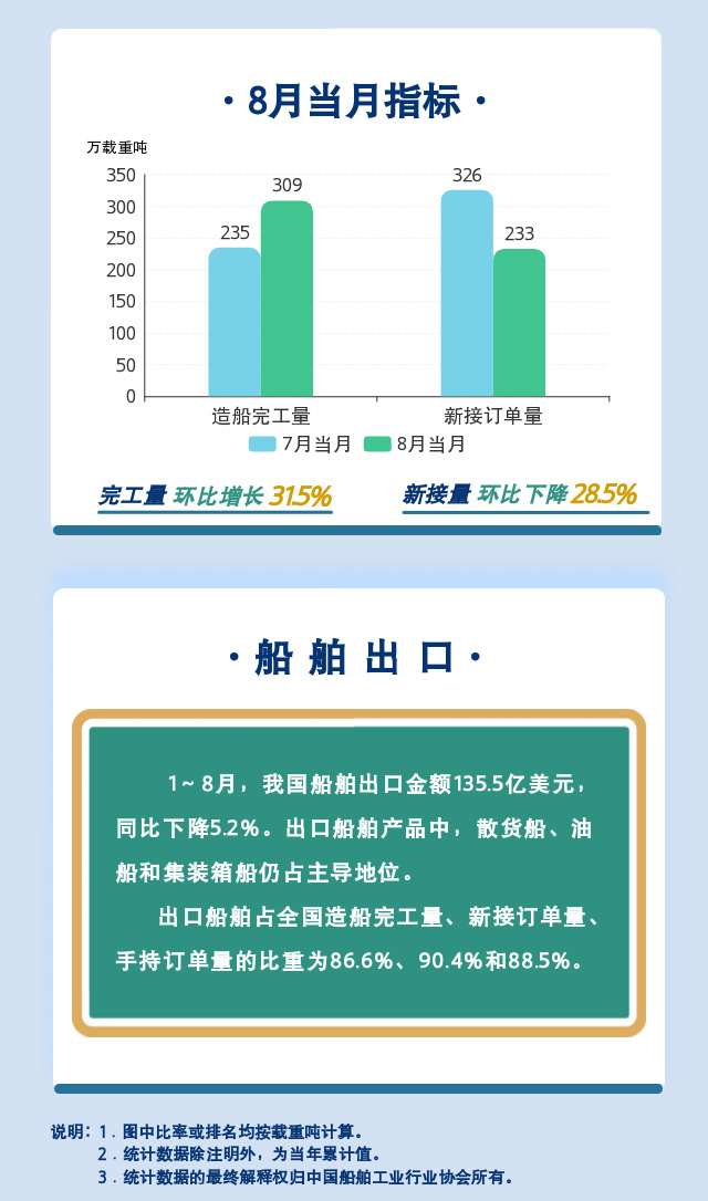 一圖讀懂:2022年1~8月船舶統(tǒng)計(jì)數(shù)據(jù)