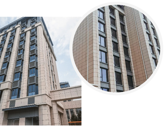 對比幕墻+保溫系統,亞士創能保溫裝飾成品板應用于濟南超算項目,在保證裝飾效果和質量的前提下,工期縮短了50%,甲方成本也節省了近50%。