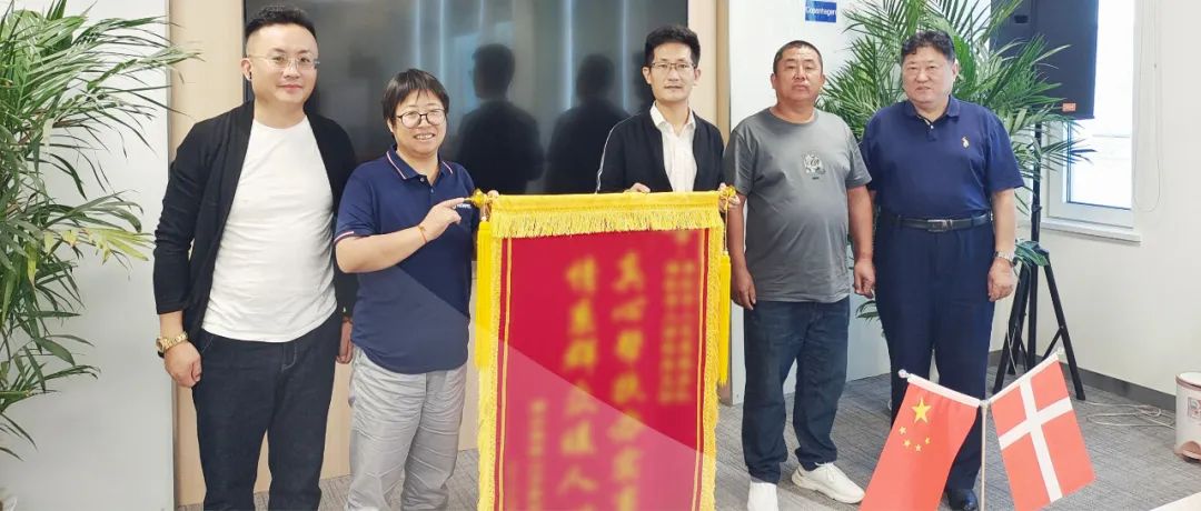 近日,煙臺市黃渤海新區潮水鎮峰山冷家村第一駐村書記桑君恒及村黨支部書記、村委會主任姜善舫將一面印有:“真心幫扶辦實事  情系群眾暖人心”的錦旗送到了海虹老人涂料(煙臺)有限公司,表達了村兩委及全體村民對海虹老人的感謝之情。