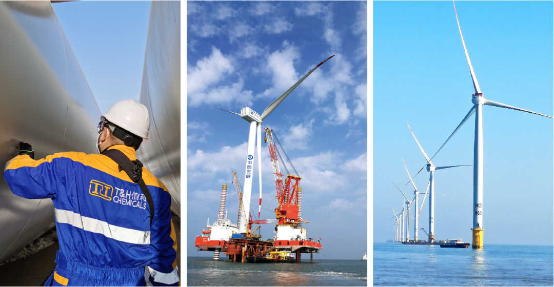 信和針對風電市場的石墨烯技術創新產品體系,已經成功應用于中新能源的彰武風場(新建),福建中閩莆田平海灣海上風電項目(維修),中廣核甲子二海上風電項目二標段(維修)等項目,并與國內多家知名的風電主機公司進行技術開發和深度合作。
