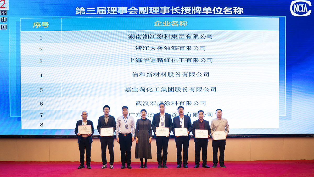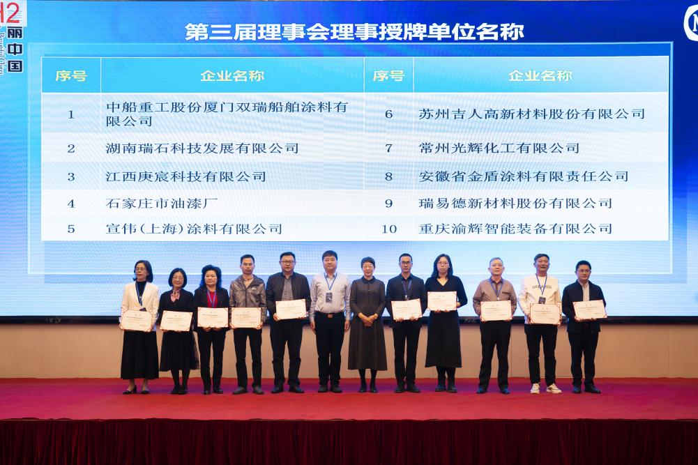 中國涂料工業(yè)協(xié)會(huì)孫蓮英會(huì)長首先為第三屆理事會(huì)理事長單位海洋化工研究院有限公司、第三屆理事會(huì)理事長王波頒發(fā)證書,緊接著,由孫蓮英會(huì)長與王波理事長為到場的各副理事長單位、理事單位分別頒發(fā)證書。孫蓮英會(huì)長表示,希望第三屆理事會(huì)能帶領(lǐng)中國防腐涂料企業(yè)在綠色、高質(zhì)量發(fā)展道路上再上新臺(tái)階。