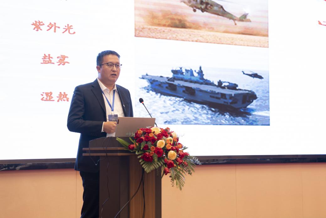 中海油常州涂料化工研究院有限公司涂料與防護(hù)工程研究院主任周如東就“直升機(jī)旋翼用新型長效防護(hù)涂覆材料關(guān)鍵技術(shù)研究及應(yīng)用”做主題報(bào)告,首先就直升機(jī)工作環(huán)境闡述了作戰(zhàn)環(huán)境破壞因素,要求直升機(jī)旋翼材料力學(xué)、機(jī)械性能優(yōu)異,因此,面對(duì)復(fù)雜作戰(zhàn)環(huán)境,新型長效防護(hù)涂覆材料關(guān)鍵技術(shù)影響巨大,常州院主要研究了聚脲彈性體功能性涂覆材料,根據(jù)Q/6S 《直升機(jī)旋翼槳葉防護(hù)材料抗砂蝕試驗(yàn)方法》檢測不同類型涂層性能差異,并分析了該類材料在其他領(lǐng)域的深層應(yīng)用,如機(jī)頭罩、雷達(dá)罩、軌道交通設(shè)備、打印機(jī)膠輥、石化煉化裝備等在耐雨蝕、冰雹、砂石沖刷、力學(xué)、化學(xué)穩(wěn)定性方面的優(yōu)異性能。