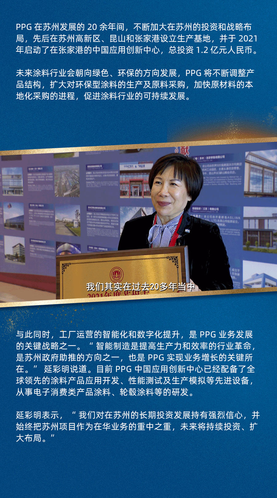近日,PPG榮獲蘇州年度“外資穩增長突出貢獻獎”。