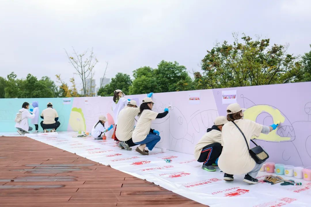 活動當天,大小志愿者們集結(jié)在鰻鱺嘴濱江綠地,共同為長達130米的墻面涂刷上了豐富的色彩。盡管天氣轉(zhuǎn)涼,到場的34組家庭還是給予了十二分的熱情,不僅將愛與祝福通過畫筆傳遞給這片區(qū)域,也享受了一段溫暖的親子時光。