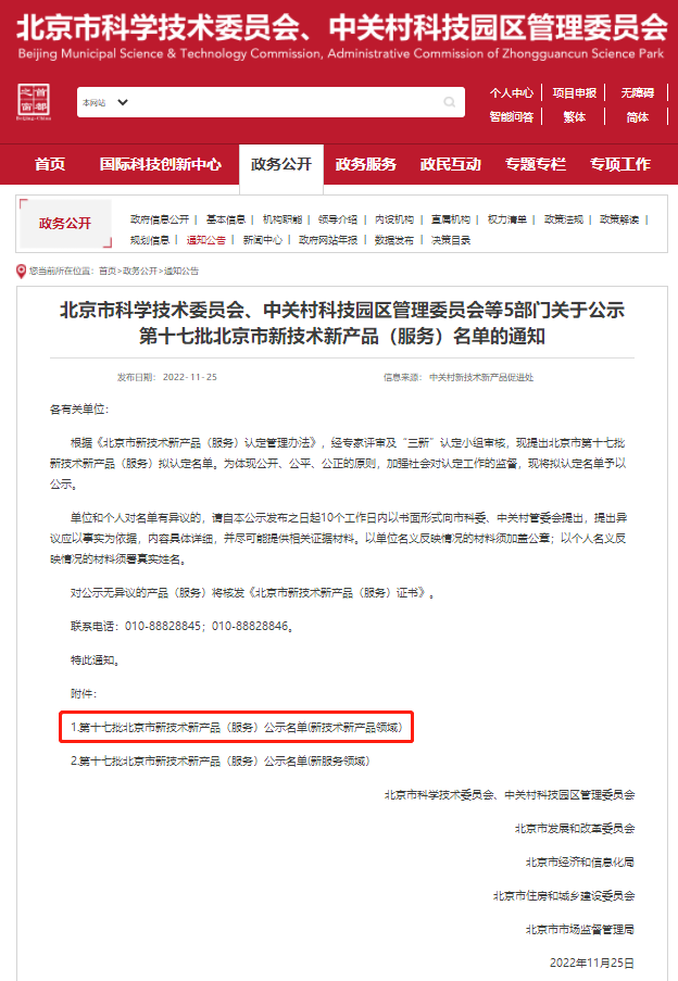 近日,北京市科學(xué)技術(shù)委員會、中關(guān)村科技園區(qū)管理委員會等部門公布了第十七批北京市新技術(shù)新產(chǎn)品(服務(wù))認(rèn)定名單。