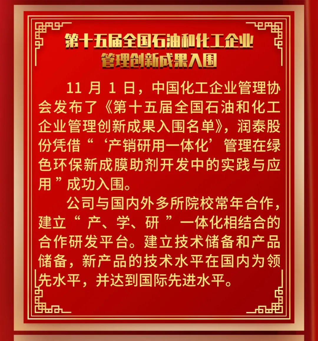 喜訊|潤泰成膜收官季斬獲多項榮譽