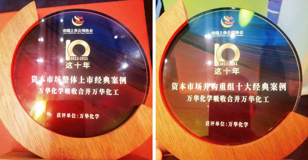 2022年12月28日-12月30日,以“篤行實干 共創未來”為主題的2022中國上市公司高峰論壇在福建泉州晉江召開。萬華化學憑借2019年完成的反向吸收合并萬華化工實現整體上市案例成功入選“2012~2022十年間資本市場并購重組十大經典案例”和“2012~2022十年間資本市場整體上市經典案例”。