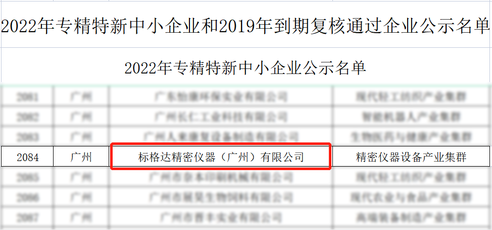 近日,廣東省工信廳組織開展了2022年度省級(jí)專精特新中小企業(yè)申報(bào)認(rèn)定工作并對(duì)審核通過(guò)的企業(yè)予以公示,標(biāo)格達(dá)精密儀器(廣州)有限公司成功入選“專精特新”中小企業(yè)名單!