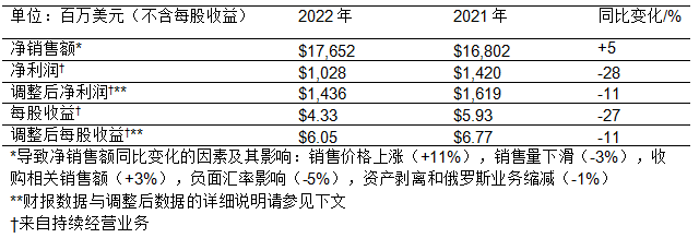 ● 2022年全年創紀錄實現銷售額約177億美元,其中有機增長達8%