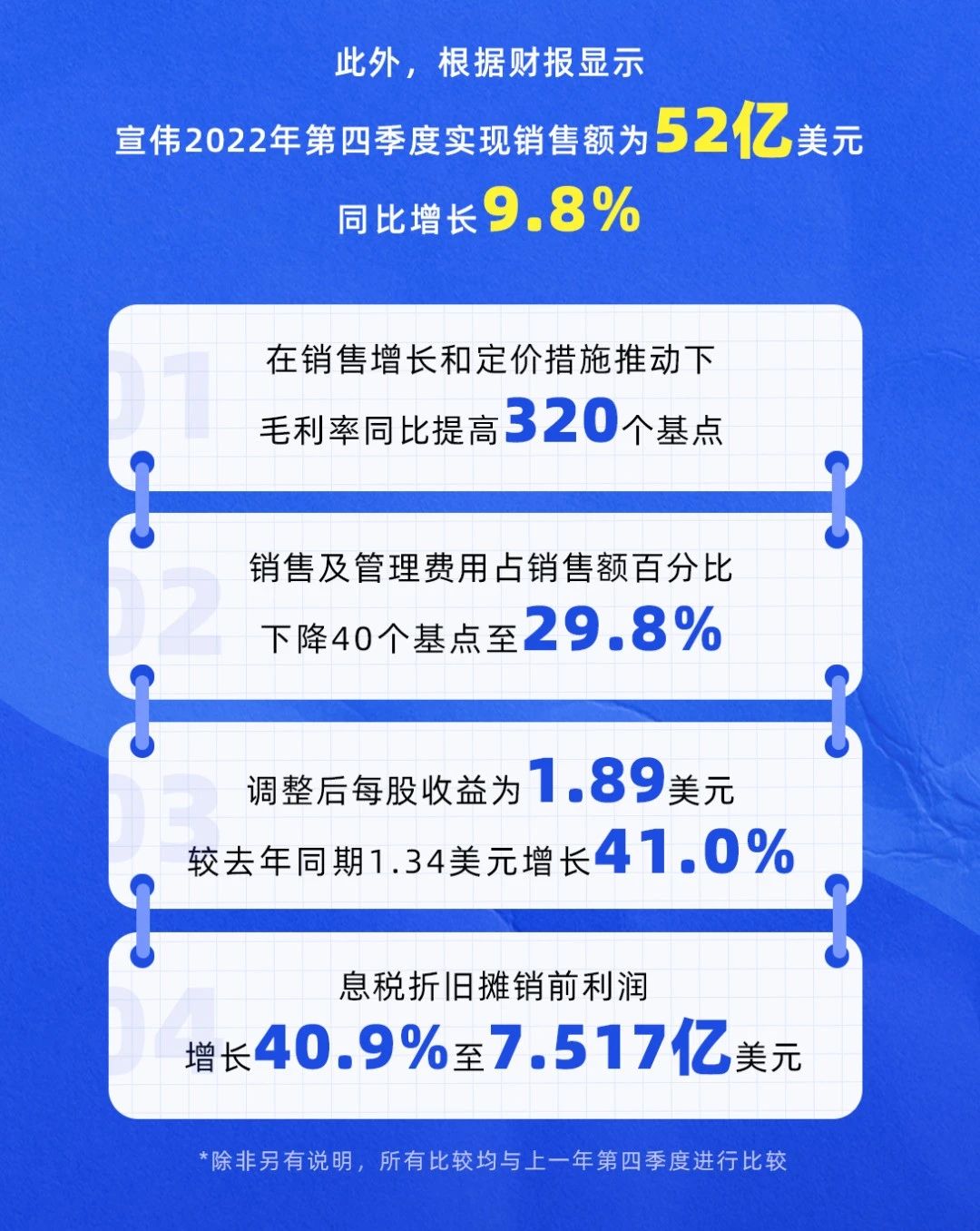 近日,宣偉公布了2022年財務業績報告全年銷售額增幅達11.1%,實現逆勢增長具體表現如何?本文帶您速覽其全年“成績單"。