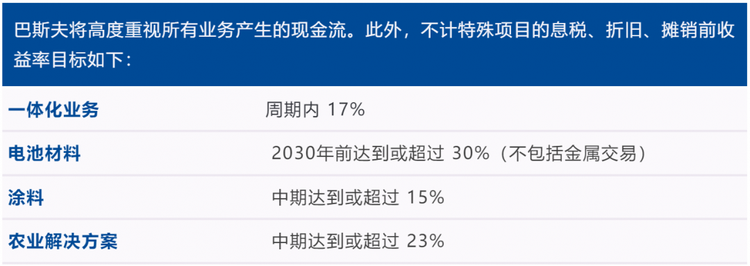 2024年1月起,巴斯夫?qū)⒉捎眯碌年P(guān)鍵績效指標(biāo)(KPI)指導(dǎo)整個集團。短中期內(nèi),公司會更重視不計特殊項目的息稅、折舊、攤銷前收益和現(xiàn)金流。同時,公司將繼續(xù)把已動用資本回報率(ROCE)作為中期管理關(guān)鍵績效指標(biāo),持續(xù)關(guān)注資產(chǎn)盈利能力。