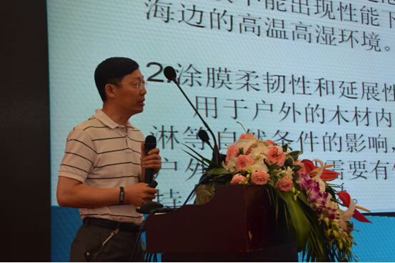 來自北京化工大學同時又是中國水性木器涂料產(chǎn)業(yè)聯(lián)盟專家委員會主任的何立凡教授帶來了《高性能戶外水性木器漆研制及應用》的報告。戶外家具包括門窗、欄桿、桌椅、棧道等木結構材料,范圍十分廣泛,因為在室外,故而對耐水性、耐候性有較高的要求。何教授認為,選用耐候性優(yōu)異的樹脂體系、設計合理的粒子結構、采用反應適中的交聯(lián)單體、配合多效的助劑、建立完整的涂裝體系,就能夠得到優(yōu)異的水性木器涂料,成功應用在戶外家具上。