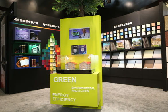 秉承著“關(guān)愛地球,重視可持續(xù)發(fā)展,堅持綠色環(huán)保”的理念,威士伯很早就開始了綠色節(jié)能涂料的研發(fā)和應(yīng)用。本次威士伯產(chǎn)品展區(qū)展出的擁有美國專利技術(shù)的綠能全效墻面漆系統(tǒng),是威士伯建筑涂料為促進(jìn)綠色建筑發(fā)展而研發(fā)的提供一站式節(jié)能及色彩解決方案的高端產(chǎn)品體系。綠能體系特有的綠能硅球技術(shù)、高效反射技術(shù)和超親水界面等核心技術(shù),能很好控制墻體熱量的吸收和傳遞,有效改善室內(nèi)溫度及濕度,節(jié)省空調(diào)制冷能耗,打造出更自然舒適的室內(nèi)環(huán)境。此外,該體系還應(yīng)用了寬域視覺色彩技術(shù),采用了特殊紅外反射顏料,突破了傳統(tǒng)反射隔熱涂料只能在白色或淺色系下才具有較好反射隔熱效果的壁壘,令建筑物達(dá)到節(jié)能與色彩的平衡統(tǒng)一。目前,威士伯綠能全效墻面漆系統(tǒng),在改善城市生態(tài),構(gòu)筑人居和諧平衡等方面正發(fā)揮著積極的作用,因而受到了眾多地產(chǎn)商、建筑設(shè)計師以及施工單位的信賴。
