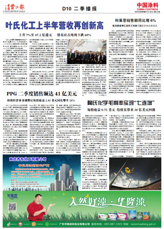 中國(guó)涂料報(bào) 2014年8月28日 星期四