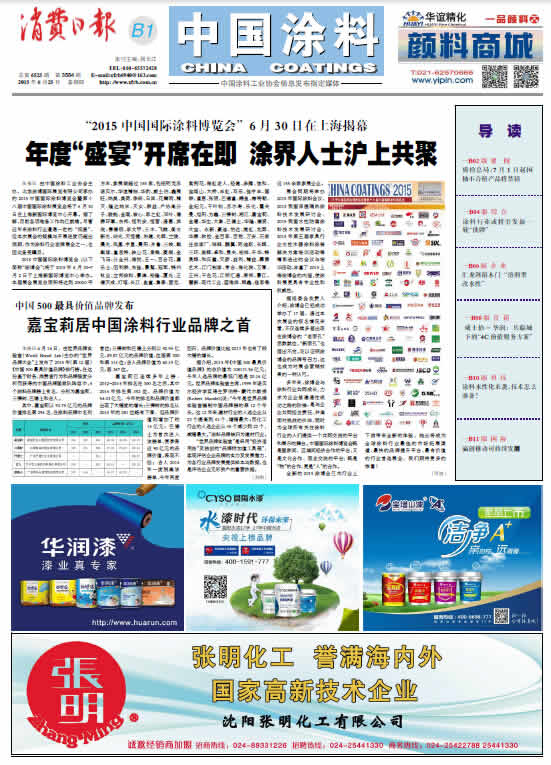 “2015 中國國際涂料博覽會”6月30日在上海揭幕