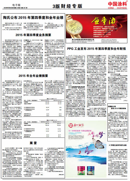 PPG工業(yè)發(fā)布2015年第四季度和全年財(cái)報(bào)