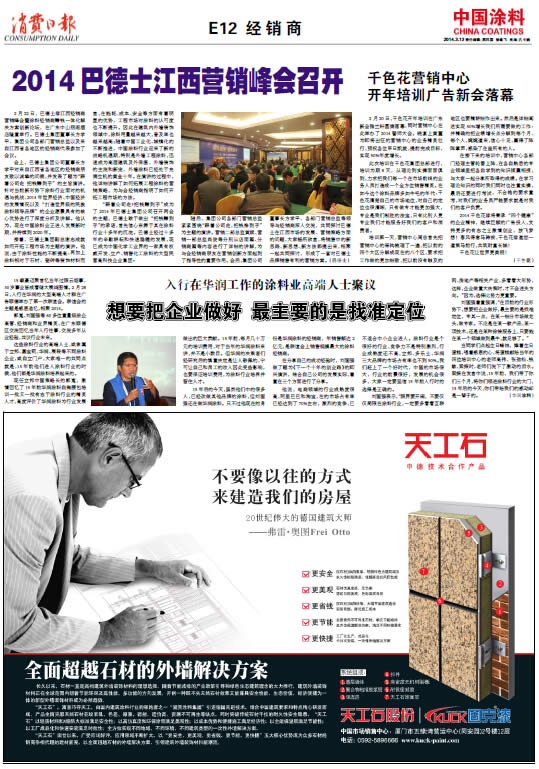 《中國涂料報》(電子版)的一切內容(包括但不限于文字、圖片、PDF、圖表、標志、標識、商標、版面設計、專欄目錄與名稱、內容分類標準以及為讀者提供的任何信息)僅供中國涂料信息網讀者閱讀、學習研究使用,未經中國涂料雜志社有限公司及/或相關權利人書面授權,任何單位及個人不得將《中國涂料報》(電子版)所登載、發布的內容用于商業性目的,包括但不限于轉載、復制、發行、制作光盤、數據庫、觸摸展示等行為方式,或將之在非本站所屬的服務器上作鏡像。否則,中國涂料雜志社有限公司將采取包括但不限于網上公示、向有關部門舉報、訴訟等一切合法手段,追究侵權者的法律責任。