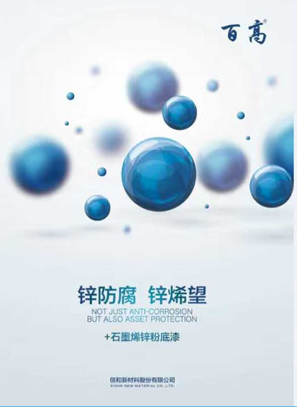 另據悉,信和新材料石墨烯鋅粉底漆包括XH403石墨烯鋅粉底漆系列和XH404石墨烯鋅粉底漆PRO系列。前者包含金屬鋅含量為25%、40%、60%、70%、77%等5個產品,其中77%金屬鋅含量的產品鋅粉含量為80%,即使金屬鋅含量低至25%,仍具有良好的陰極保護能力;后者具有更加優異的防腐蝕性能。共有5個產品,金屬鋅含量分別為50%、60%、70%、77%、80%,用于嚴酷大氣腐蝕環境下鋼結構的長效防腐。為減少環境污染和更可持續發展,應選擇低鋅含量的防腐涂料。石墨烯鋅粉底漆系列產品中20%、40%、60%金屬鋅含量產品完全滿足C4環境下的中長期防腐要求,70%、77%金屬鋅含量產品能滿足C5-1或C-M等更苛刻的腐蝕環境。